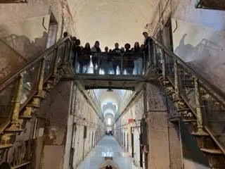 Inside the walls of the Eastern State Penitentiary. Students spent several hours in conversation with the curators of the museum, unpacking the choices the curators made. What kind of stories did they chose to tell? How did the museum make sense of incarceration in the 19th century? Today? Should the museum be used for ghost tours (even if they bring in a lot of money)? Click the image to see the coursepack and texts that we used the think through these questions and so many others throughout our Sacred Spaces journey.