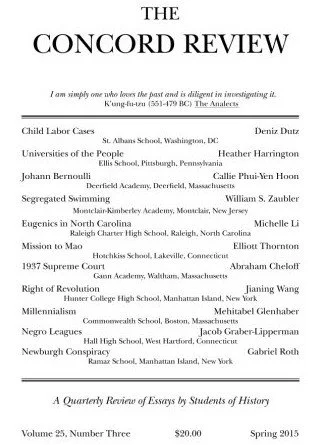Other students have taken essays from our classes, tirelessly worked with me to polish them, and submitted those essays for publication in the Concord Review.